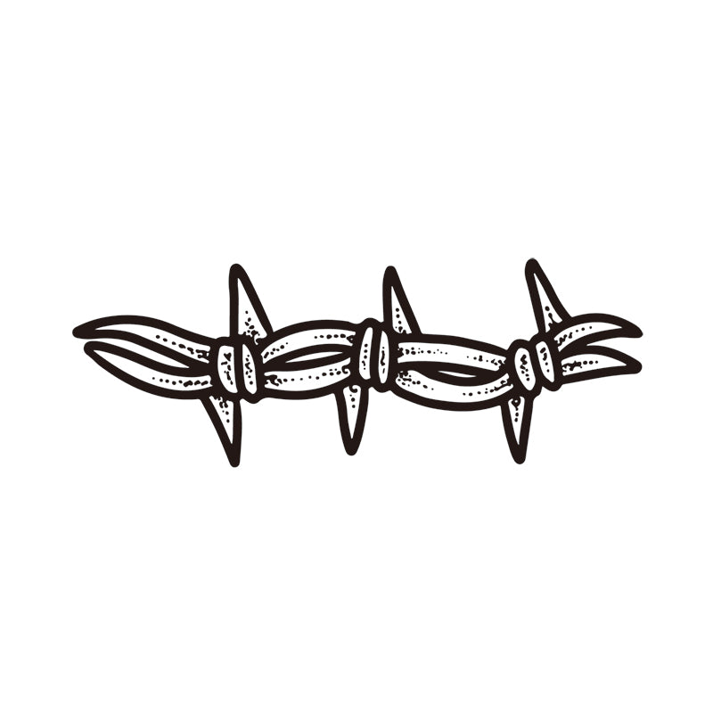 This tattoo illustration shows a short segment of barbed wire, depicted with defined contours and stippled shading in a classic... Read more