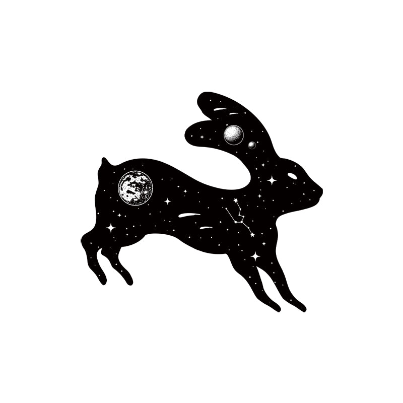 This leaping rabbit, silhouetted in a night sky scattered with constellations and celestial bodies, suggests both physical grace and metaphysical... Read more