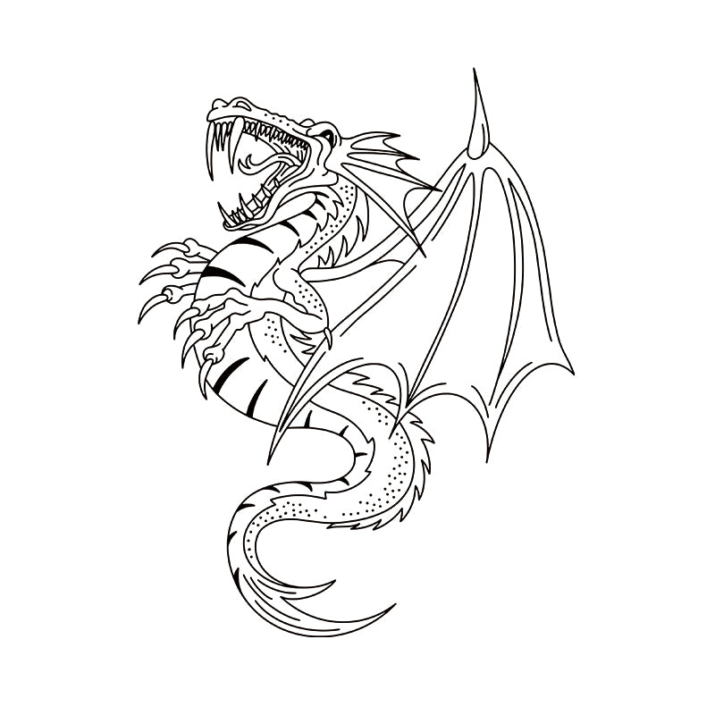 Wings stretched wide, claws bared, and jaws unhinged—this dragon flies not for glory, but for reckoning. Drawn in fine lines... Read more