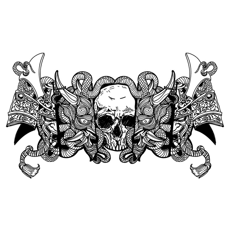 Two horned guardians and twin war axes encircle a weathered skull—the eternal symbol of sacrifice. This design echoes the battle... Read more