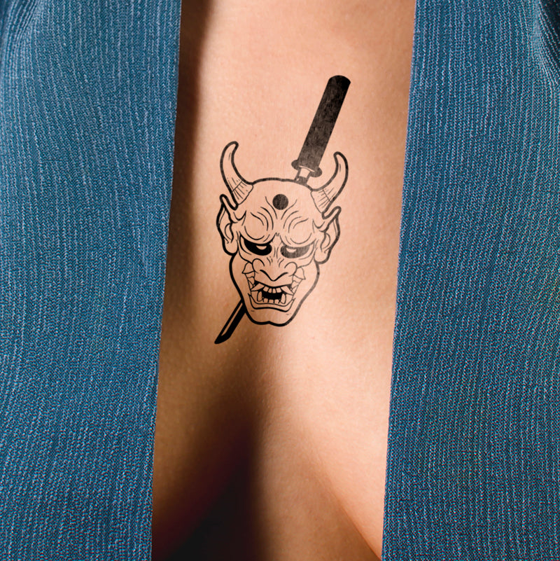 A furious oni glares with unbroken rage, even as a jagged blade pierces from crown to chin. This Neo-Japanese design... Read more