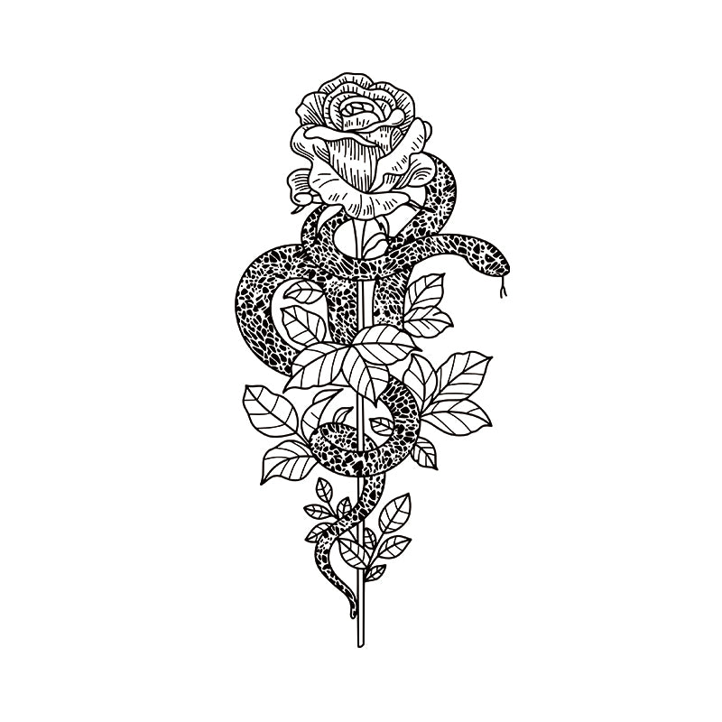 A sinuous snake coils tightly around a blooming rose—beauty entwined with danger. The delicate petals contrast with the serpent’s cold... Read more
