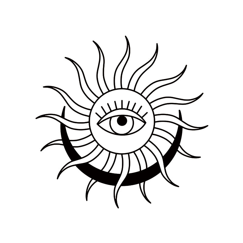 An all-seeing eye shines from the heart of the sun, while a crescent moon rests below—uniting light and shadow in... Read more