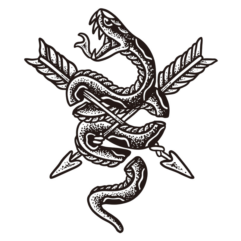 A coiled serpent pierced by crossed arrows, this design represents resilience in the face of conflict. “Strike and Survive” is... Read more